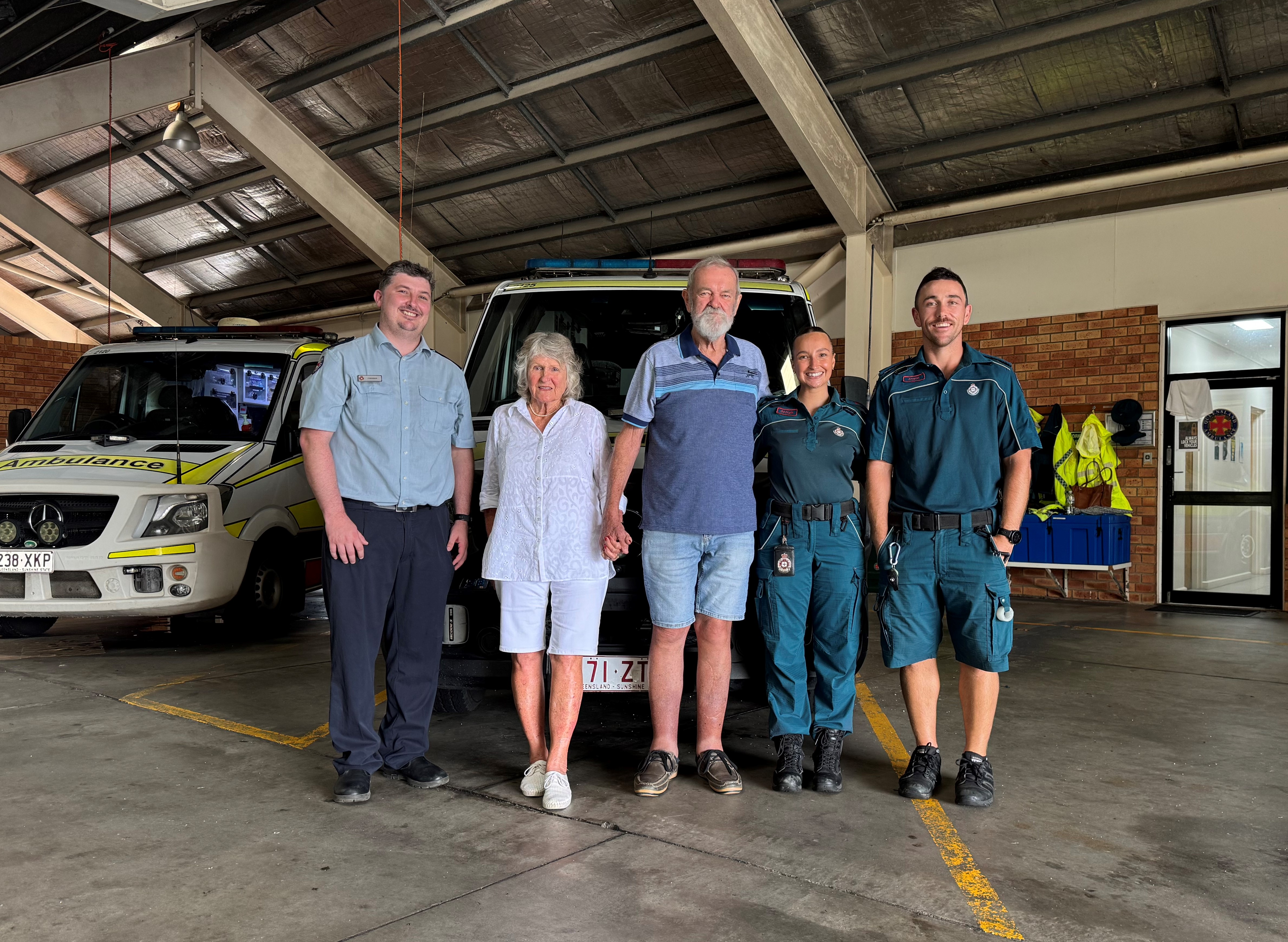 In a heartfelt moment of gratitude, Athol and Christine recently visited the Bowen Ambulance Station to meet the people responded on the day. The visit provided an opportunity for the couple to personally thank the crew whose quick actions and professional response played a vital role in saving Athol’s life.