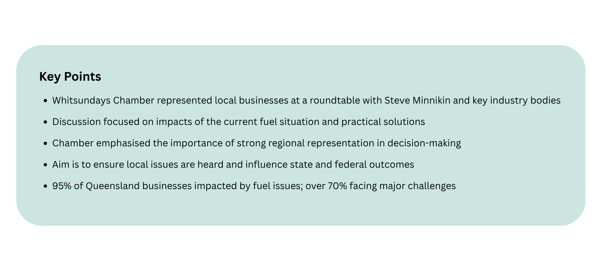 The roundtable provided an important opportunity for knowledge exchange, bringing forward real-world examples and discussing targeted, practical interventions to address both the short- and long-term impacts of the current fuel situation. The Chamber’s focus was clear: ensuring a strong regional perspective was part of the conversation.