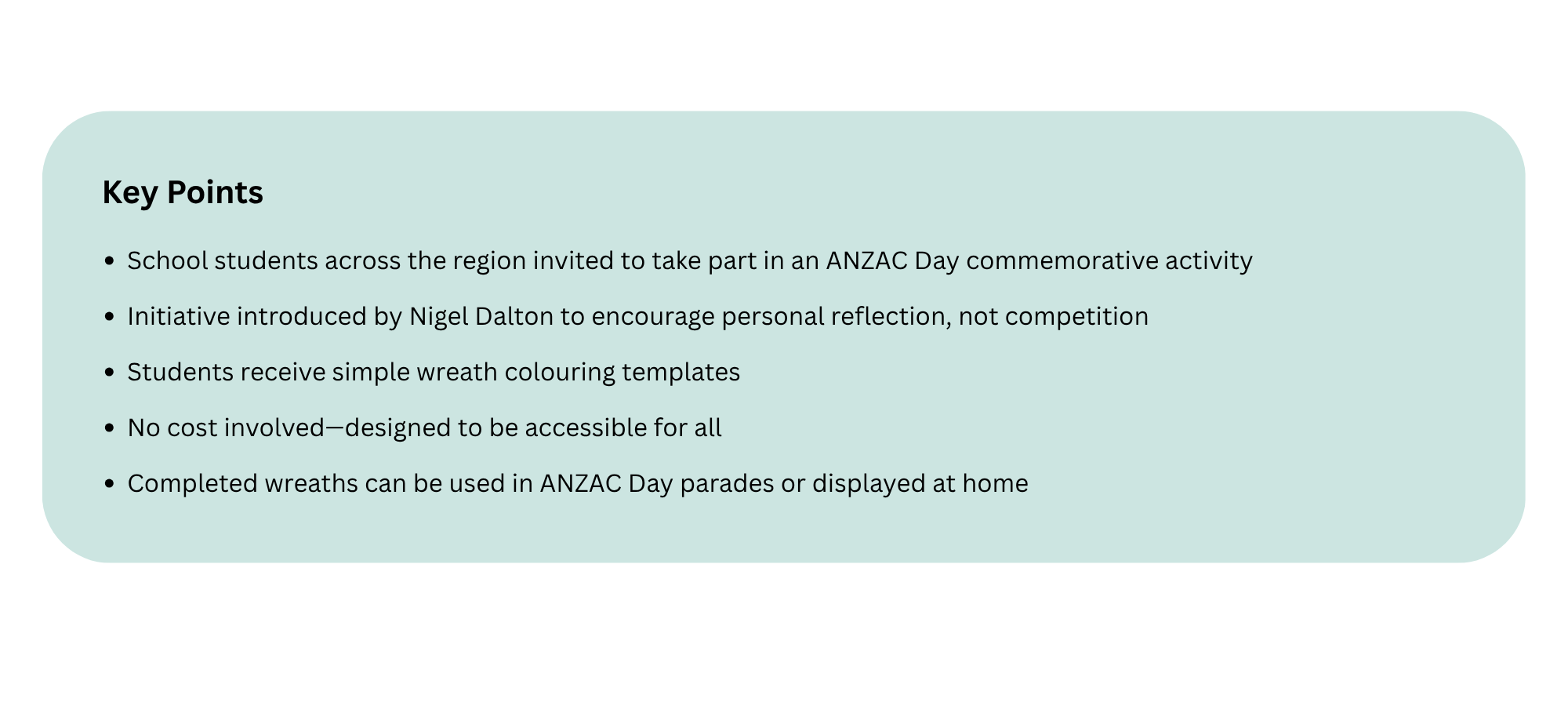 As ANZAC Day approaches, school students across the region are being invited to take part in a simple but meaningful commemorative initiative designed to help them reflect on service, sacrifice and national identity.