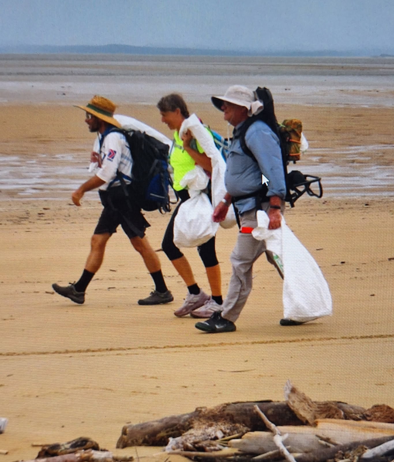 The original plan was to walk across Shellgrit Creek and collect rubbish along the sheltered beach south towards the mouth of Baker’s Creek. However, runoff from recent rain had elevated the water level, prompting the group to put a Plan B into action. Members instead focused on the path from Illawong Beach along the foreshore.