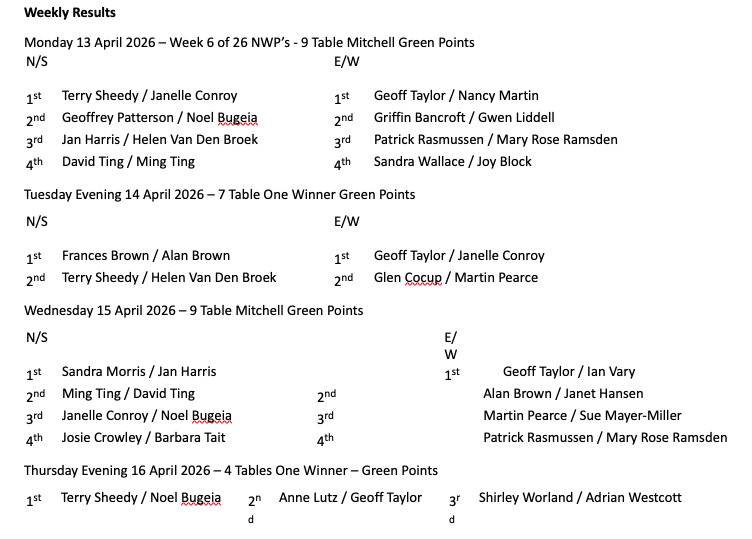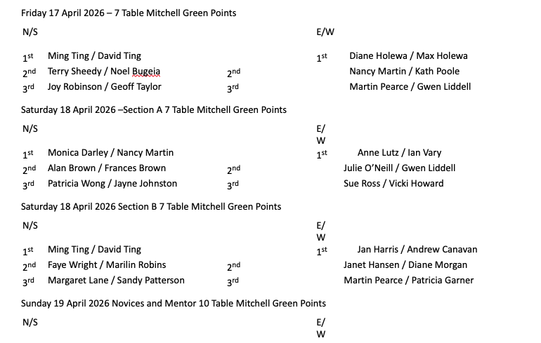 Recognition is extended to members who have attained a higher level of Masterpoints earned and to the Novice recipients of our March Incentive Awards.