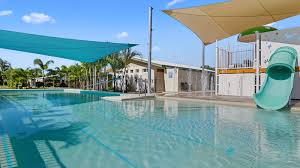 Queens Beach Tourist Village offers powered sites, cabins, a swimming pool, water park, and children’s playground. The park’s 140 sites are neatly hedged for privacy something Mel says guests love.