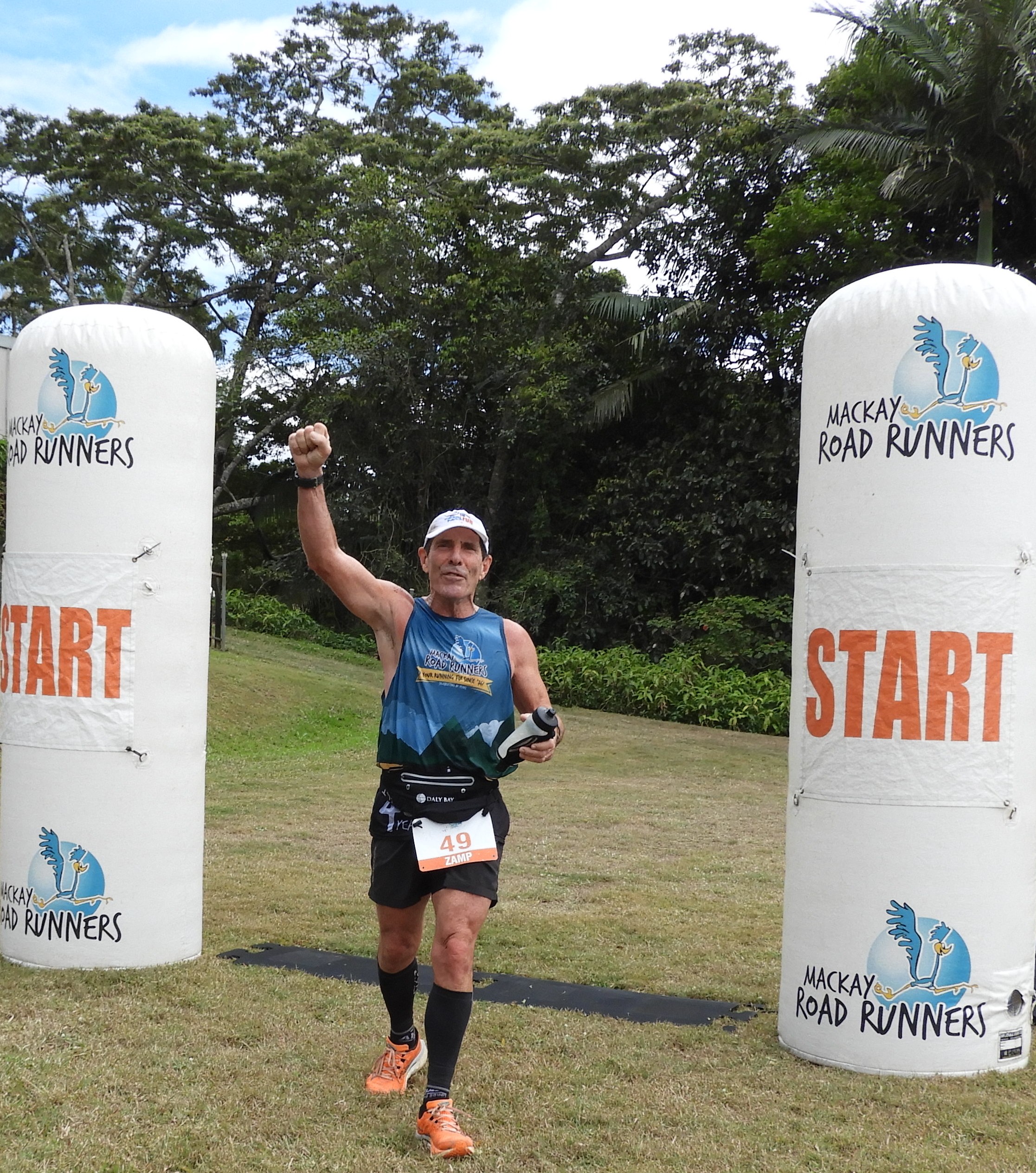 Alan Zamparutti is ecstatic finishing the 19km (plus a few more kilometres) in the ACE Engineering Eungella Trail Run.