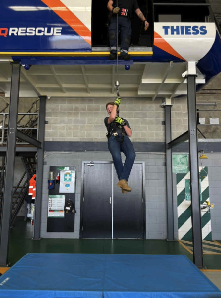 Joel was treated to a full tour of the CQ Rescue facility, where he explored the control room and gained insight into how the coordination team manages life-saving missions across the region. He also had the chance to sit inside the helicopter itself, learning how the crew operates during critical rescue and aeromedical emergencies.