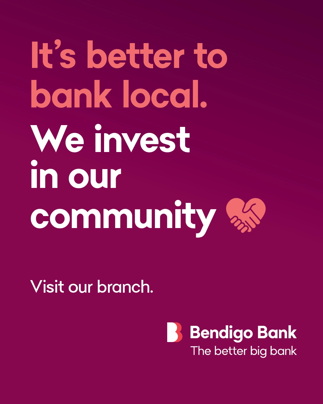 Community Banks offer the best of both worlds: the full range of modern banking products and services backed by the security of Bendigo Bank, Australia’s most trusted bank, combined with the personal service and local investment of a community-owned model. The key difference is that profits don’t just leave town. Instead, they’re reinvested directly into schools, clubs, events and initiatives, creating a cycle of support that benefits everyone.