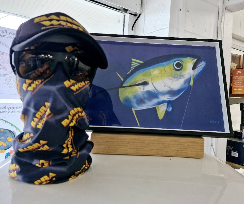 A talented young local boy named Reef has been selling copies of his framed marine-themed artwork at Barra World in Proserpine, following his dreams of owning his very own boat.